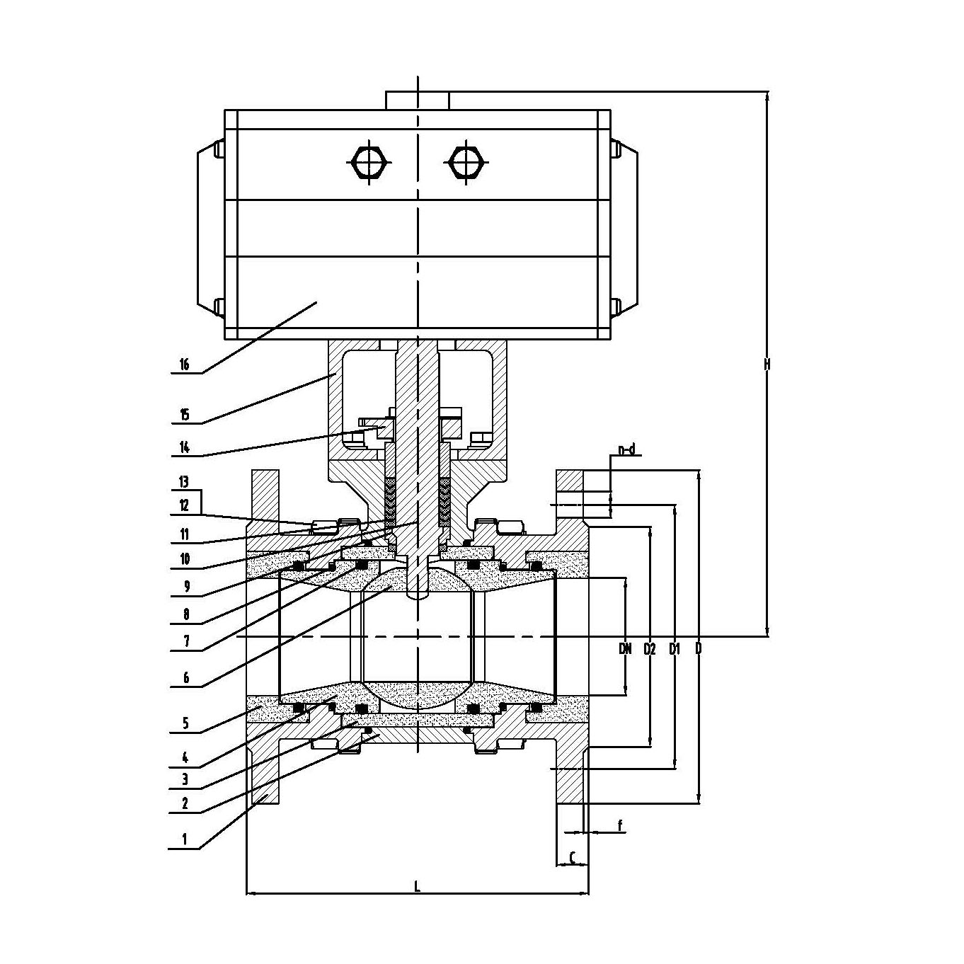 | DN | L | D | D1 | D2 | C | f | H | n-d |
